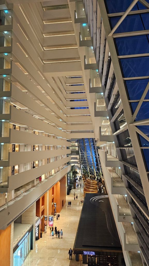 Letisko Changi patrí medzi najlepšie na svete a funguje skôr ako futuristické mestské centrum. V jeho srdci stojí Jewel Changi s najvyšším krytým vodopádom na svete – Rain Vortex, obklopený tropickou záhradou a zeleným chodníkom, ktorý pripomína botanický park, nie terminál.