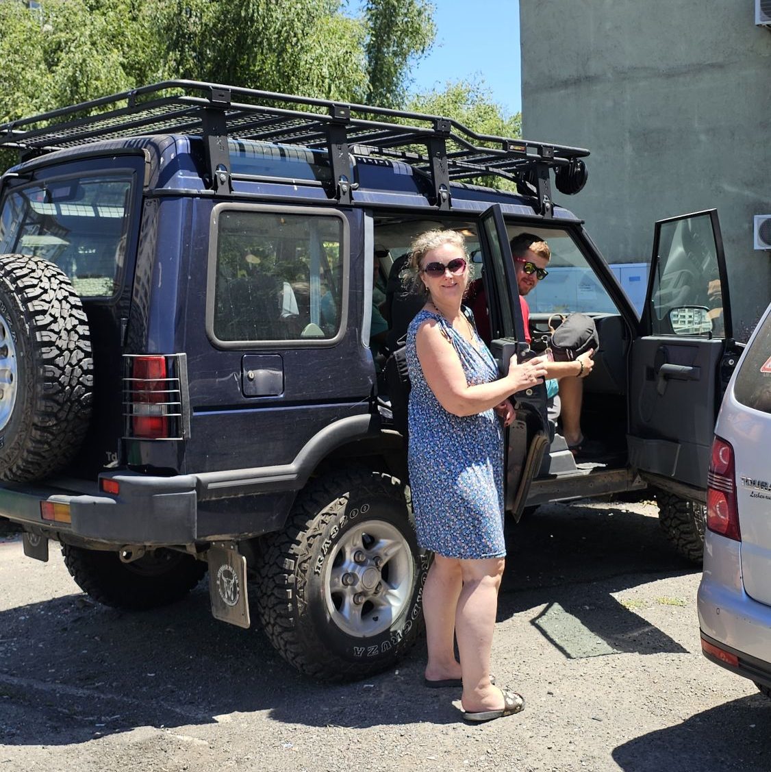 Vedľa bola budova autoservisu, ale neochotný mechanik nás odbil s tým, že má veľa práce. Keď však zistil, že si to chceme opraviť sami, dovolil nám použiť dielňu, avšak diel by nám prišiel až na druhý deň. Odporučil nám iný servis naproti, kde síce nemali vhodný tlmič pre naše zdvihnuté auto, ale poskytli nám adresu off-road servisu. Ten sa žiaľ nachádzal 30 minút na opačnú stranu od nás. A tak sme sa znova previezli naspať.