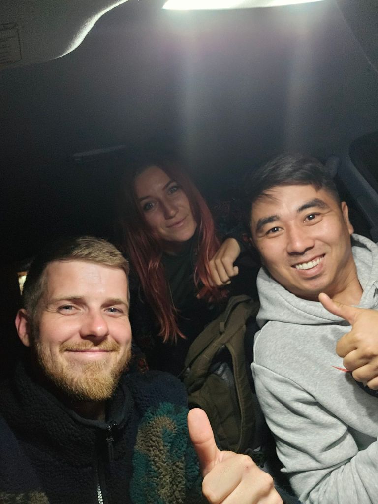 Ráno, hneď ako sme sa zobudili, prvé, čo sme videli z okna, bol policajt, ktorý si premeriaval naše auto. Chvíľu sme ešte ležali, no neodchádzal. Zhodli sme sa, že asi čaká na “pozornosť”. Luky teda vyšiel von a začal sáčkom oblepovať LED svetlo. Len čo ho oblepil, policajt zmizol. Náhoda?