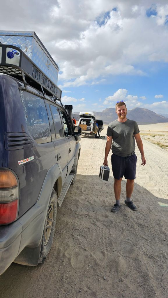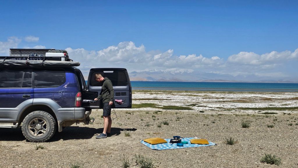 Didi a Karolína, párik z Holandska, nás presvedčili, že menšie jazero je oveľa krajšie než to, kam nás viedla navigačka (Yashikul lake). Ostali sme spolu kempovať, otvorili si pivo a rozprávali sa až do večera. Ich príbeh bol veľmi podobný tomu nášmu – výpoveď v práci, podobný plán cesty, otrava jedlom v Dušanbe, hrozný servis auta…