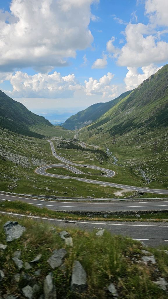 Zrazu sa pred nami objavili veľké kopce a začali sme prudko stúpať. Po niekoľkých serpentínach sme sa ocitli na vrchole, kde sme obdivovali výhľad na celú dolinu. Pokračovali sme ďalej cez tunel, ktorý je s dĺžkou 884 m najdlhší v Rumunsku. Za ním nás čakalo testovanie bŕzd – klesanie…