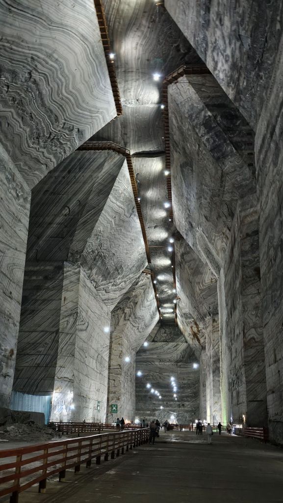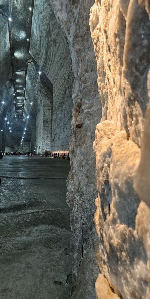 Naša ďalšia zastávka bola soľná jaskyňa. Nikto z nás nemal predstavu, čo nás čaká, ale ~pohľad na plné parkovisko a dlhú radu, pripomínajúcu časy, keď sa stálo na banány za socializmu, nám rýchlo napovedal, že to bude niečo výnimočné~. Po vystátí v rade sme nastúpili do minibusu, ktorý nás zaviedol do bane cez špirálový tunel, dlhý 5 km a vedúci 208 metrov pod zemský povrch.