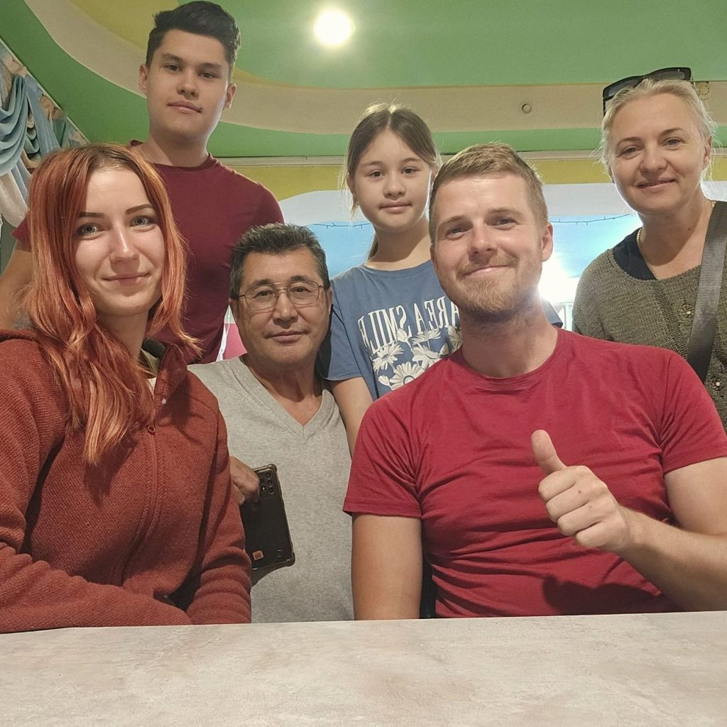Počkali sme na našich nových známych a skočili sme spolu do reštaurácie. On Kazach, ona Ruska. Viedli nás do slávnostne vyzdobenej reštaurácie, kde nás usadili k jedinému obyčajnému stolu.
