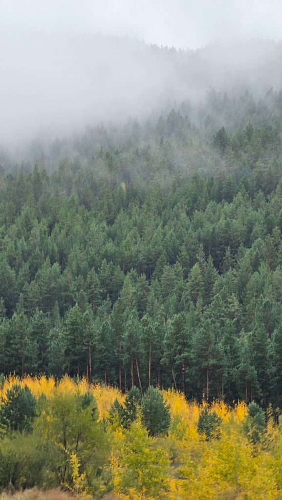 Step sa postupne vytrácala a nahrádzali ju brezové tajgy. Cesty začali lemovať lesy, zorané polia, staré kombajny. Jeseň sa rozbehla naplno – stromy sa farbili do oranžova, brezy žiarili na slnku.
